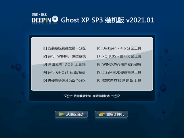 深度技术Windows xp 官方装机版 2021.01针对系统运行程序的时候可能会出现错误的情况作了细致优化,更新和调整了系统优化方案近20项,系统将更稳定,上网速度更快,安装系统可选择DOS模式或WinPE模式安装,避免有些硬件下DOS无法安装系统,系统经过优化,启动服务经过仔细筛选,确保优化的同时保证系统的稳定,内存消耗低,该系统具有全自动无人值守安装功能,让技术员轻松应对多台电脑的安装,采用适当的精简与优化,全面提升运行速度,充分保留原版性能和兼容性。