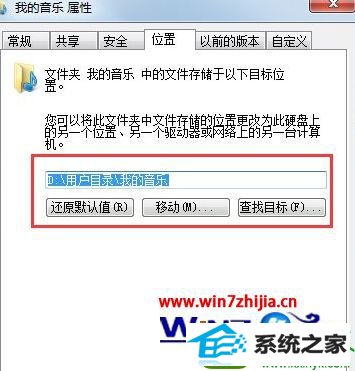 5、打开我的文档,右键点击我的音乐→属性→位置→还原默认值或者设置到你以前设置的文件夹内。