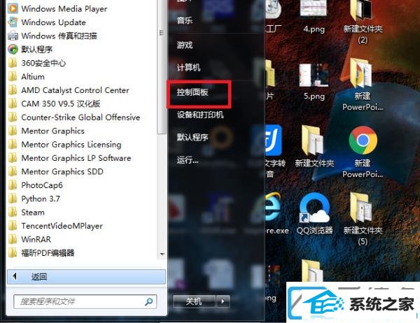 第一步:打开win10装机版的【开始】菜单,选择【控制面板】。