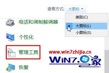 2、将控制面板的查看方式修改为大图标,在下面点击“管理工具”;